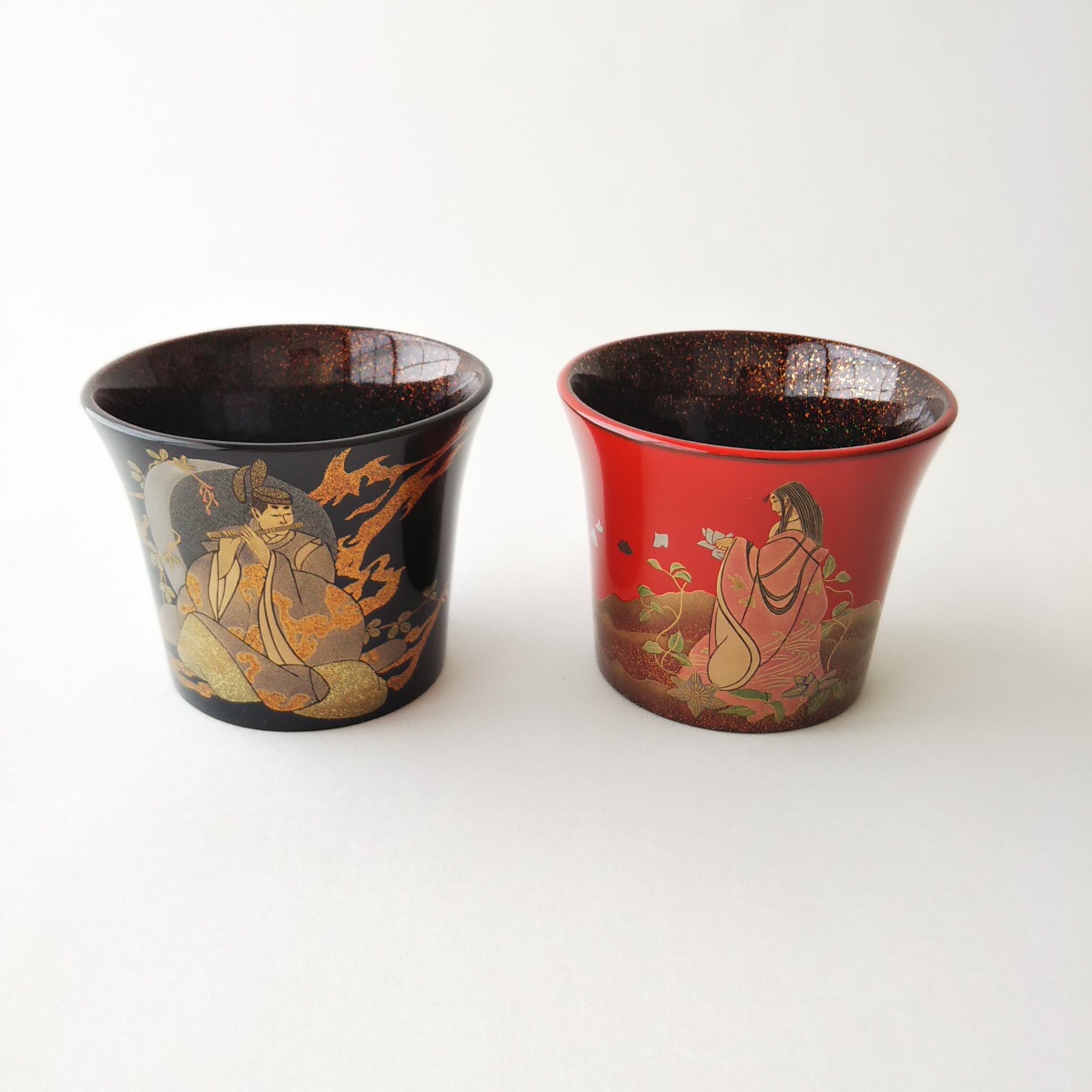 外側 黒塗り、光源氏が笛を吹く様を研出蒔絵