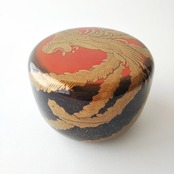 朱色のぼかし塗りに、金粉でのぼかしもかけ、そこに鳳凰を描きました。