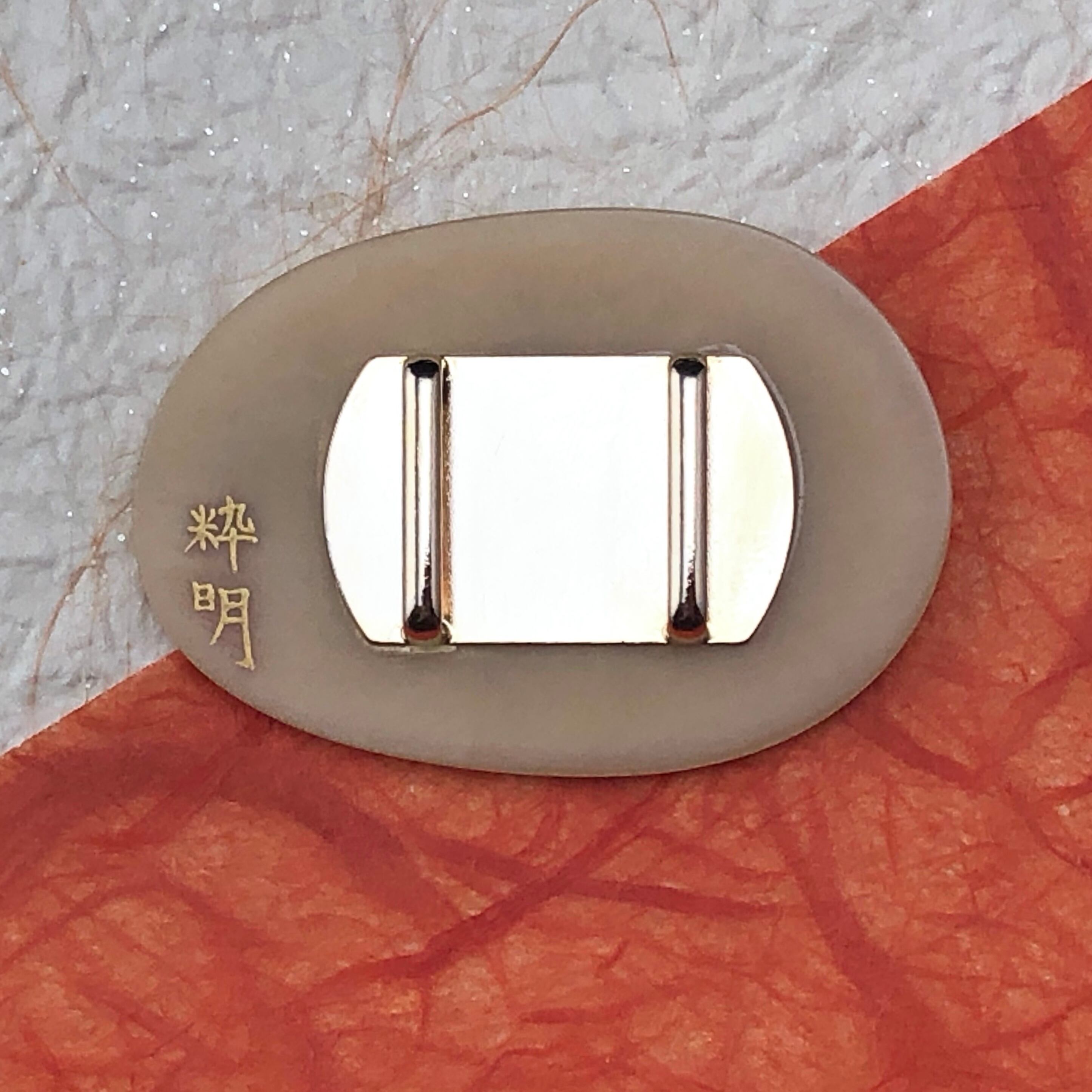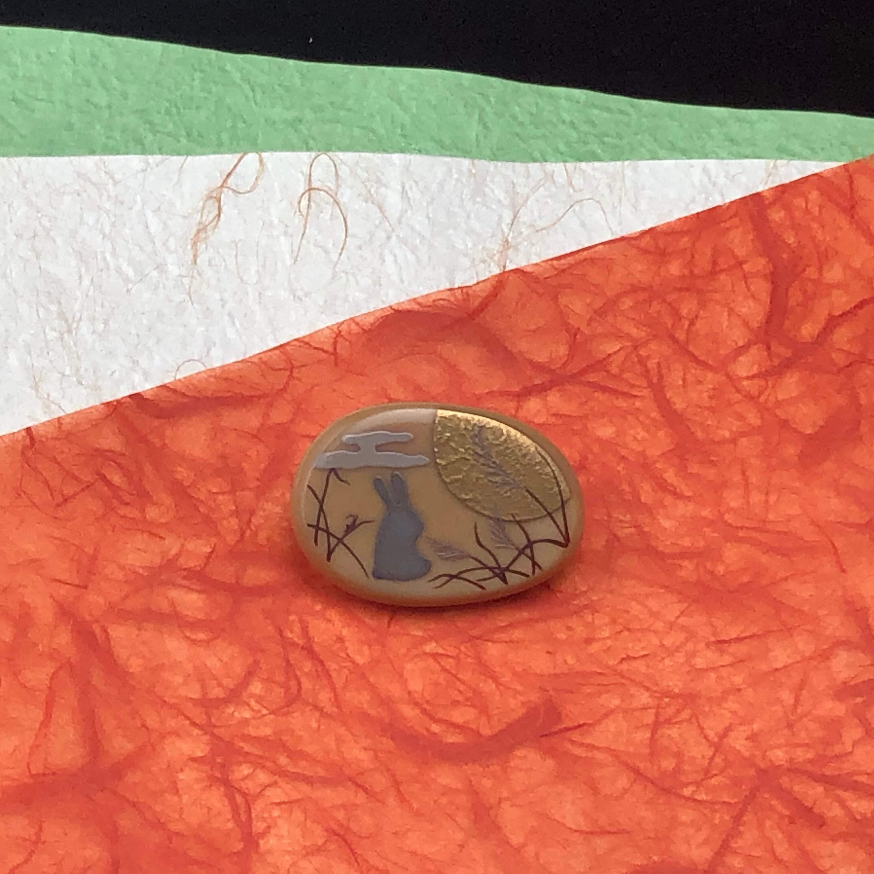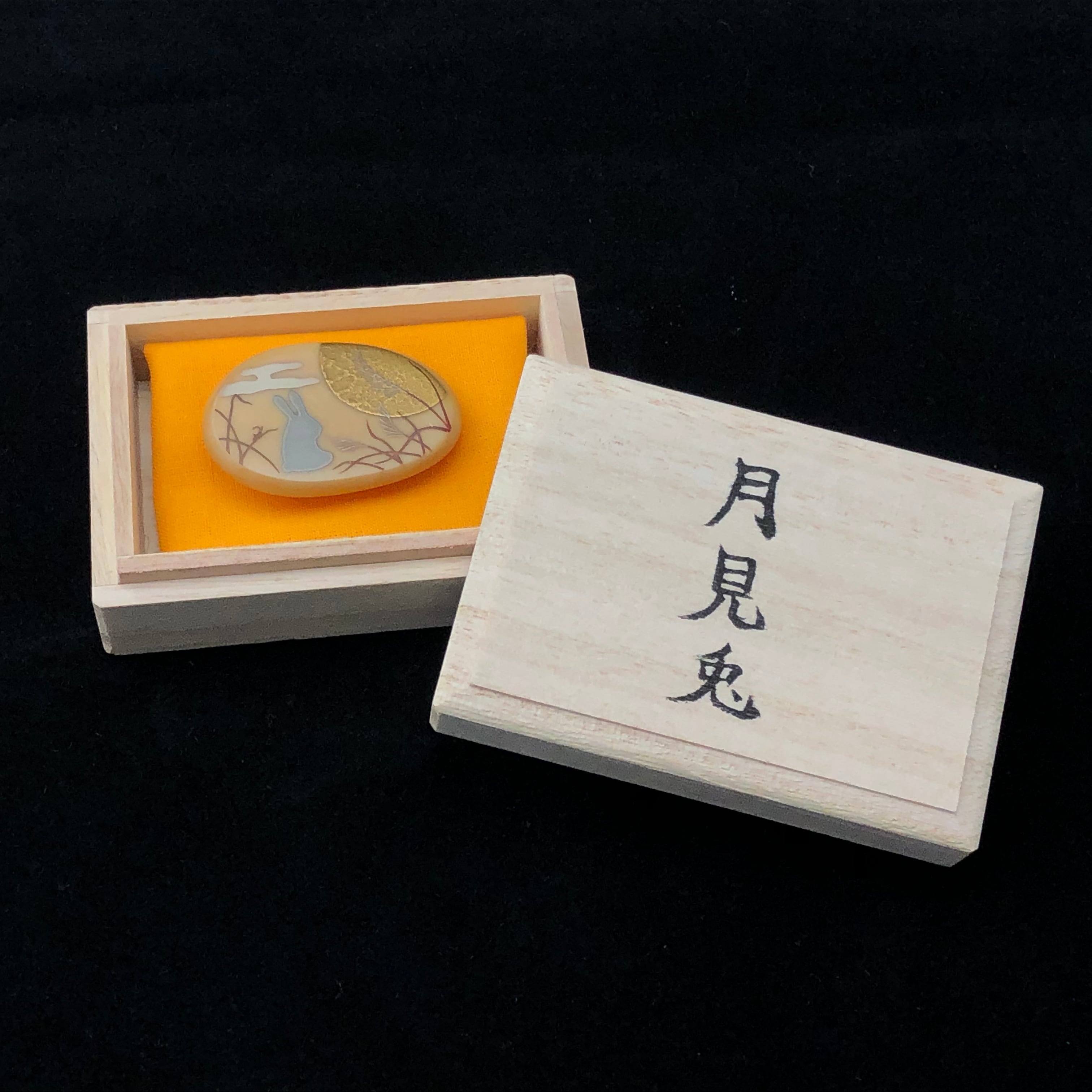 タグアナッツ(象牙椰子)という固い木の実を加工して蒔絵した帯留になります。