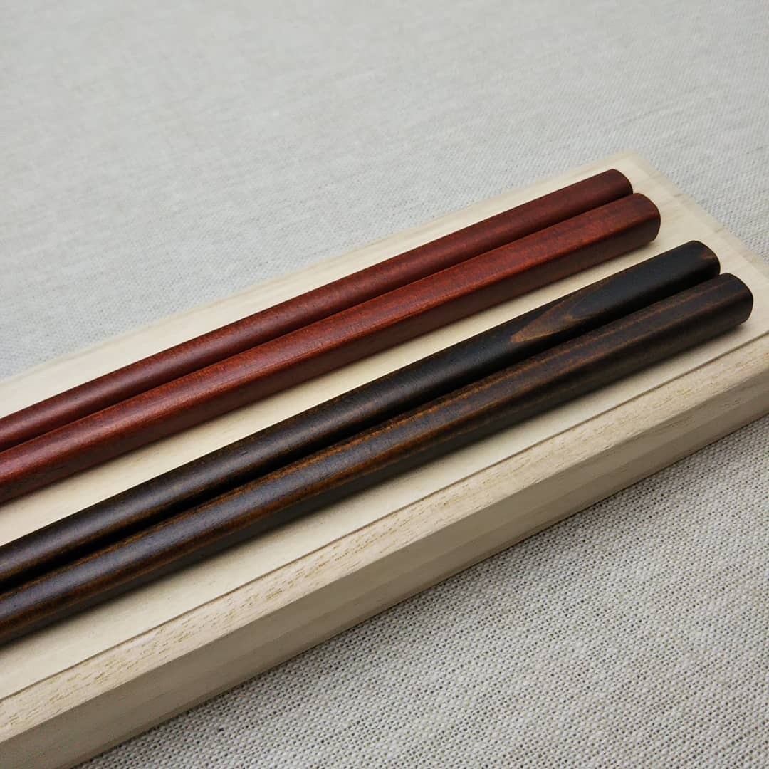 能登原産の能登ヒバ(アテ)材を使用し、天然漆で拭き漆を5回施した、シンプルに木や漆の色や質感を感じて頂けるお箸です。