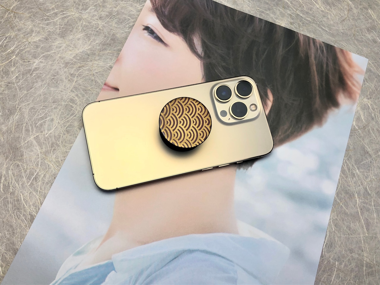 スマホを持ちやすく、スタンドとしても使えて、デザインの種類も豊富な漆塗りアイテムは如何でしょうか。