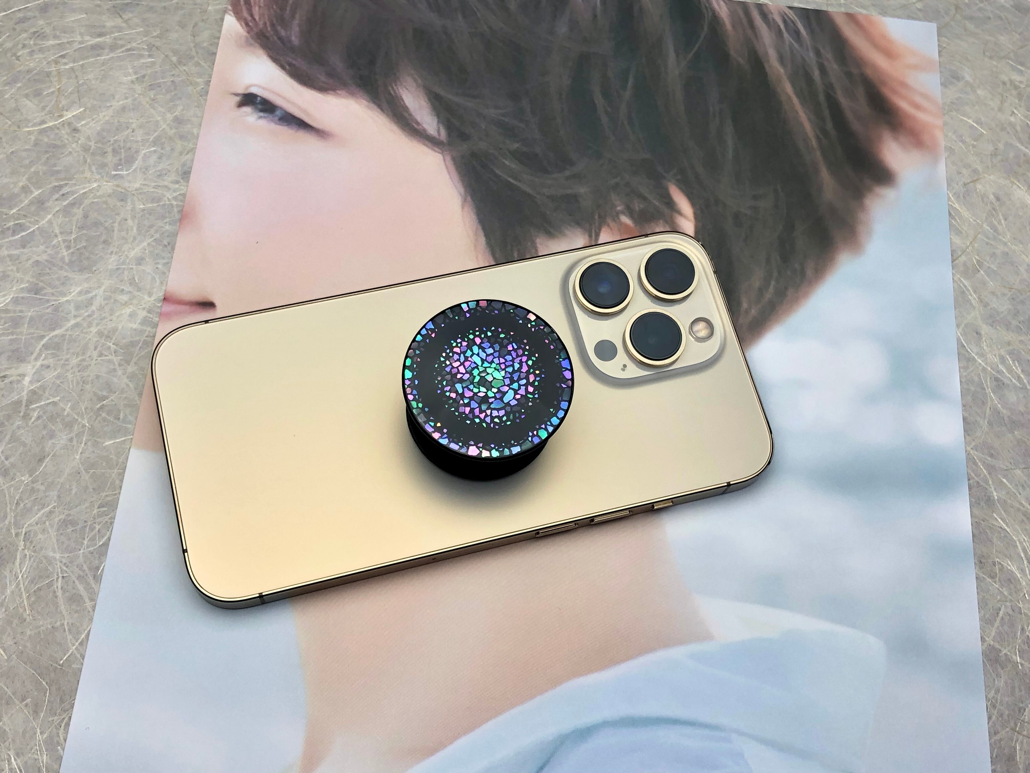 ポップソケッツとはアコーディオンのように伸び縮みする丸い形が特徴で、スマホの裏側にくっつけて使用します。