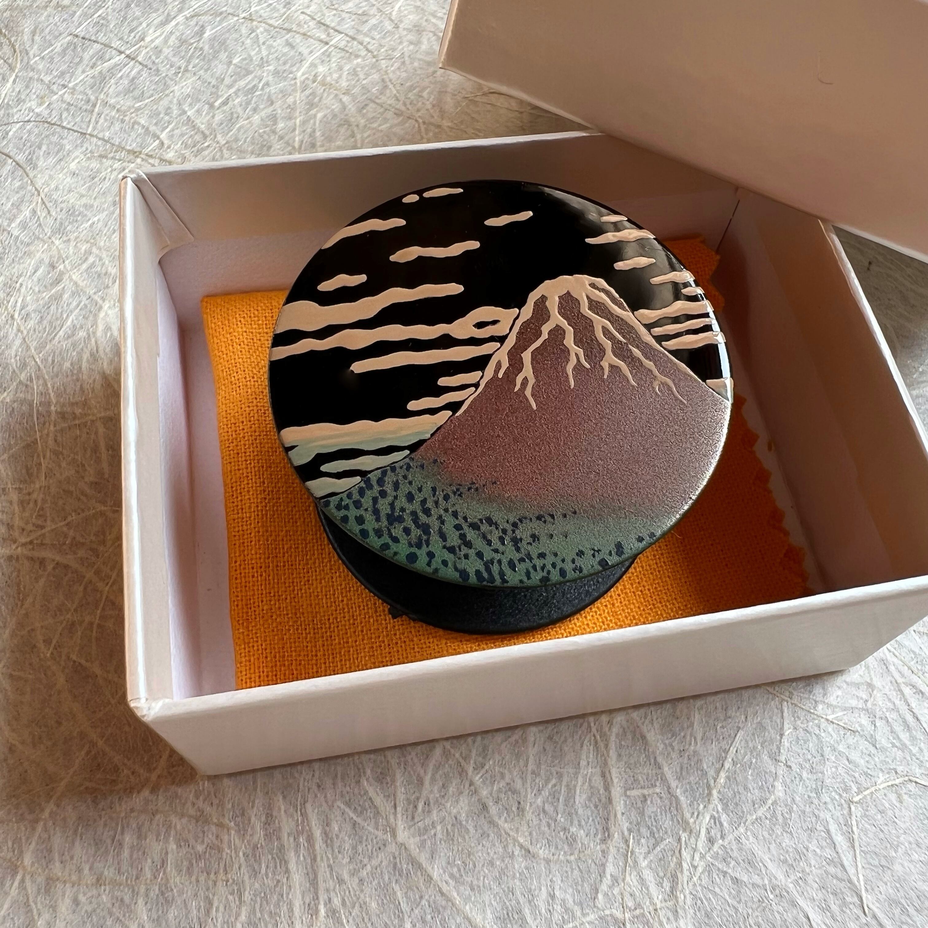 そのポップソケッツに漆塗りを施して、更に葛飾北斎の【凱風快晴】を蒔絵技法にて描きました。