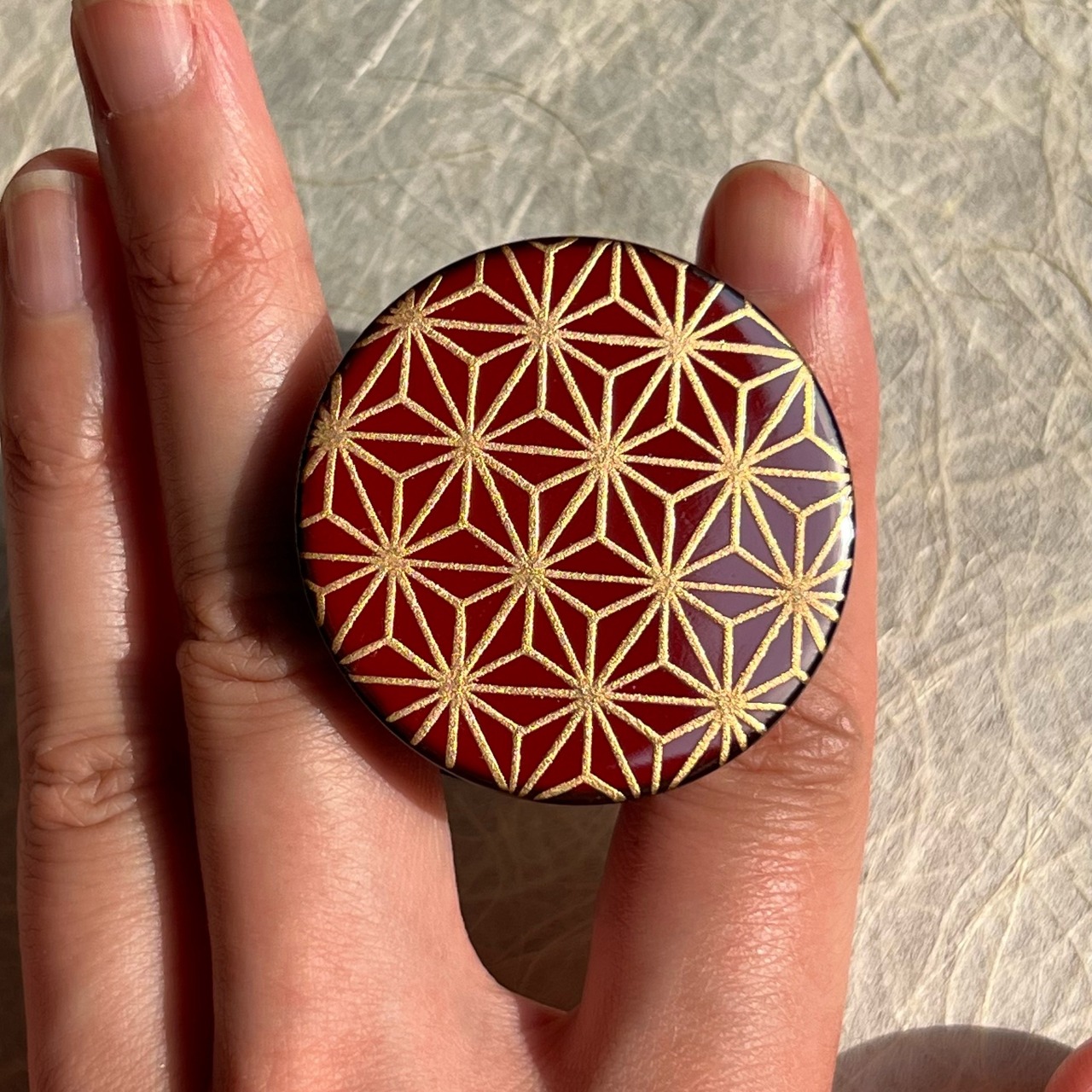 そのポップソケッツに漆塗りを施して、更に【麻の葉文様】を蒔絵技法にて描きました。