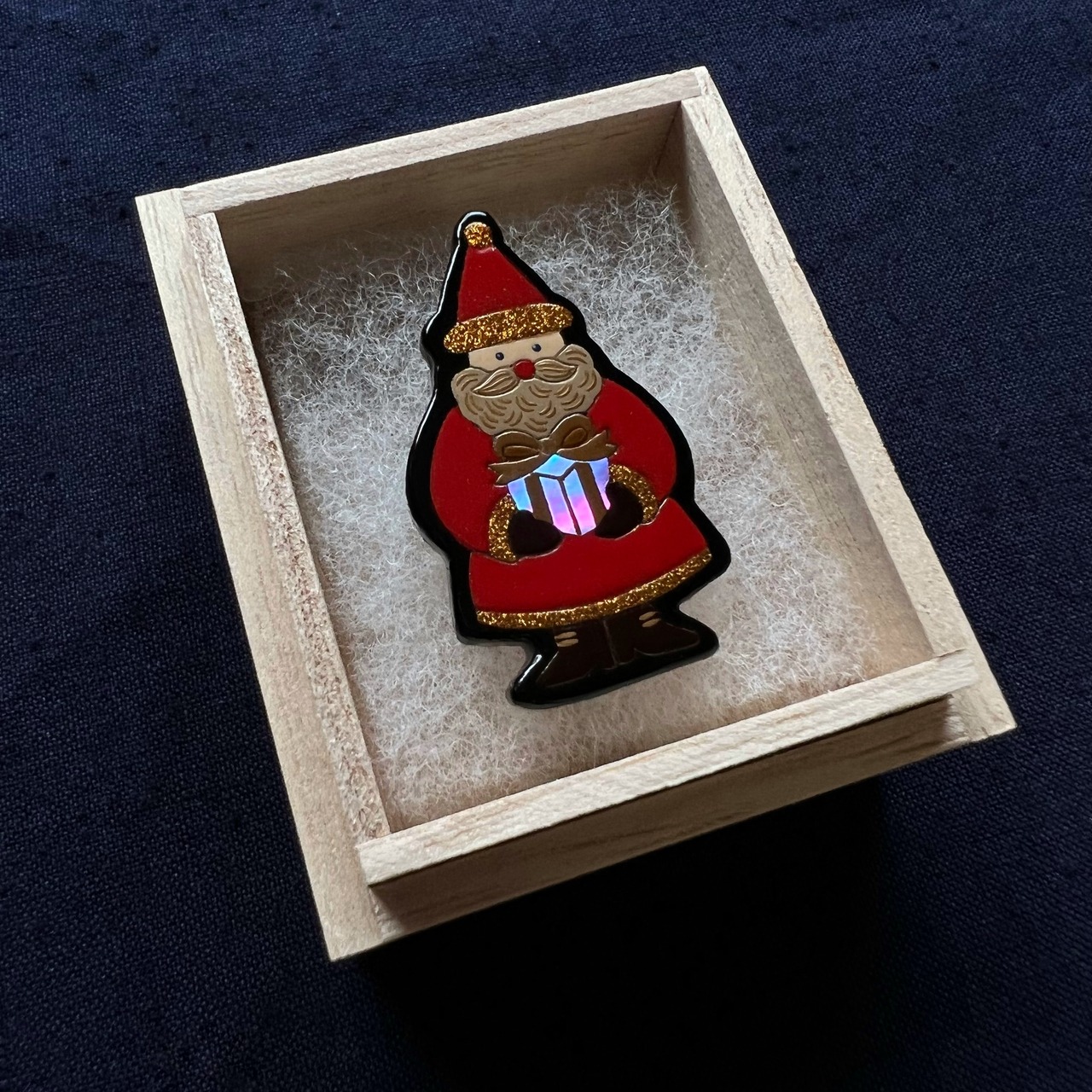 サンタクロースを蒔絵でどのように表現できるか挑戦しました。